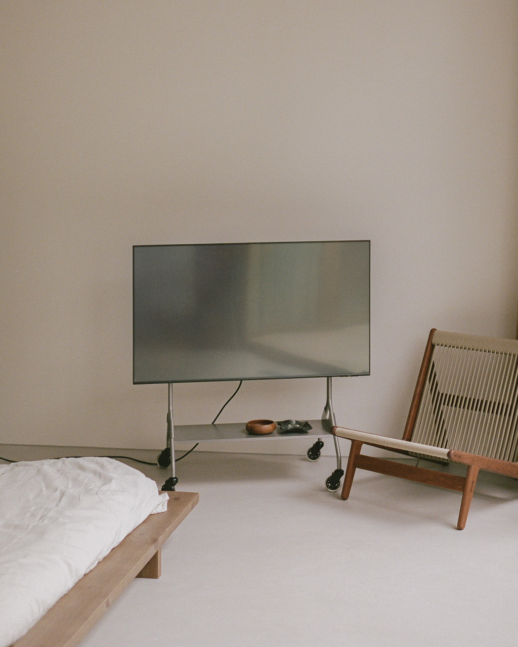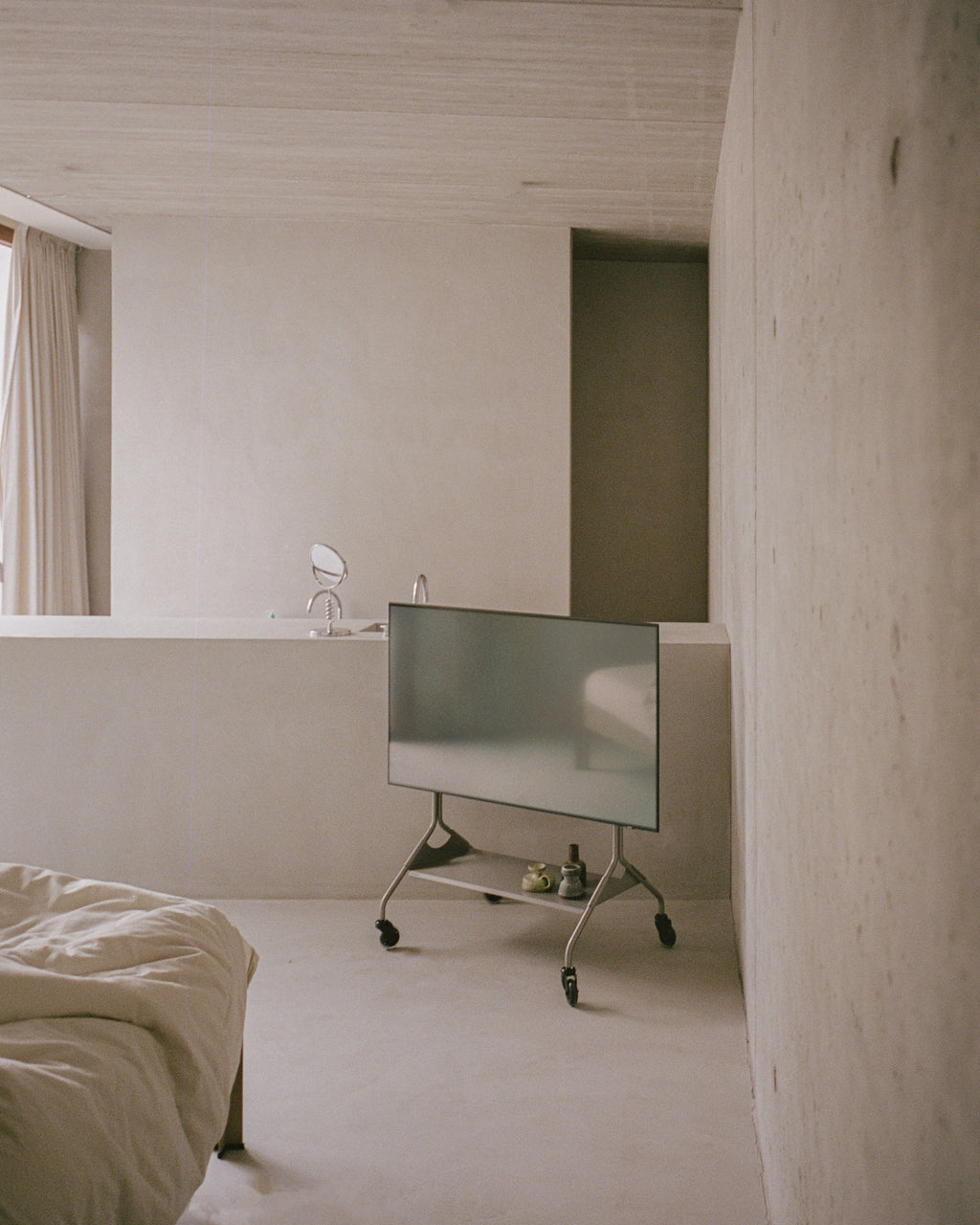 Moon RAW är en ny version av Pedestals ikoniska tv-stativ, skapad i samarbete med industrialkonzept. Den här limiterade upplagan behåller den skulpturala formen från originalet Moon Rollin’, men är nu tillverkad i råpolerat stål med en transparent skyddslack. Ytan avslöjar stålets naturliga karaktär – med subtila skiftningar i ton och en metallisk glans. För första gången rullar Moon RAW på hjul inspirerade av klassiska rullskridskor – både djärvt och funktionellt, med en tydlig blinkning till industriell rörelse. Tillsammans med den medföljande stålhyllan kombineras visuell tyngd med smart flexibilitet. Moon RAW tillverkas i ett begränsat antal exemplar.