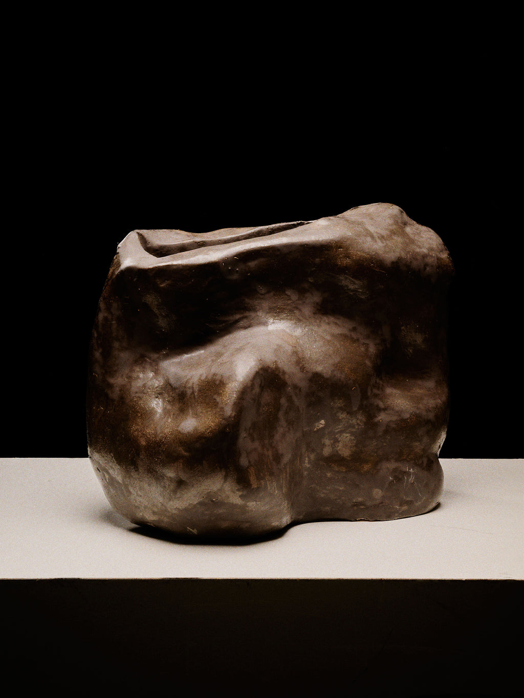 förenar skulptural form med en djup, jordnära finish. En rå men sofistikerad närvaro – skapad för att stå i centrum eller smälta in i ett noga kurerat rum.